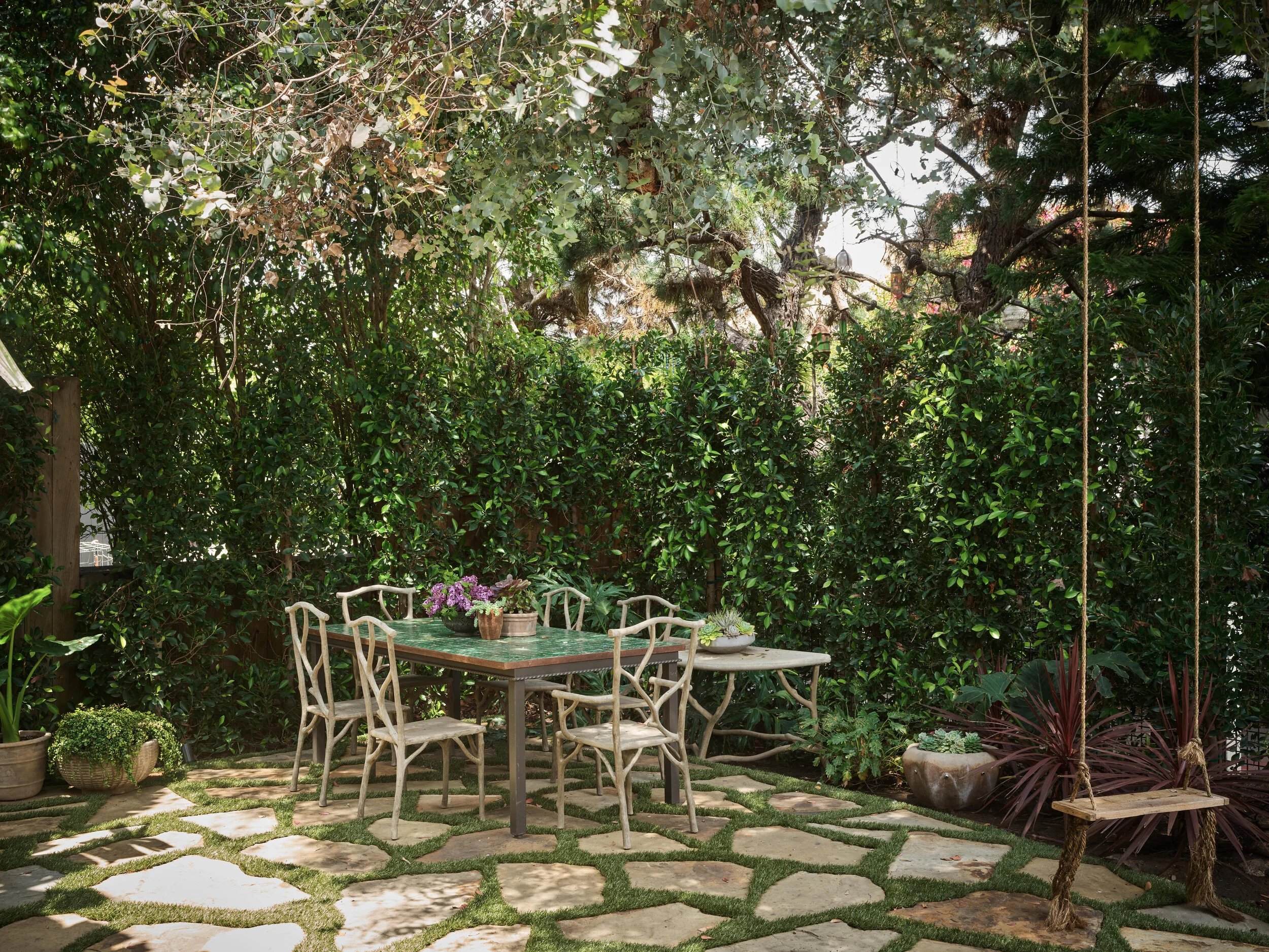 This 1927 Spanish jewel has been meticulously restored and elegantly designed by Electric Bowery and Tess Bethune in collaboration with the owner. The magical compound is comprised of a 3BD / 3BA main house + two separate living quarters over the garage each including a private kitchen and bathroom. Everything in the home has been customized. The material palette is rich and luxurious with warm walnut millwork, luminous onyx, exquisite mosaic tile work and dramatic quartzite. Handpicked vintage light fixtures are carefully placed throughout the home. The completely renovated cook's kitchen is equipped with all of the most up to date appliances and finishes. The classic Spanish arched front door was enhanced with a bifold system. You will find a beautifully reimagined master suite, Waterworks finishes throughout and many more details to appreciate in person. The outdoors is equally as special with lush greenery, hand laid brick throughout, and privacy. If you haven't experienced Crescent Place, it is the most coveted of all the walk streets in Venice.